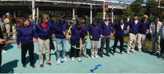首個重磅項目——“十人九足一圈到底”協同賽,將賽事推向了第一個高潮。這是一個極其考驗團隊協調性與統一性的復合型項目,要求十名隊員不僅要用綁帶將相鄰的腿兩兩綁住,形成“十人條腿”的奇特模式協同前行,還需在到達終點后共同協作,讓一個呼啦圈穿過所有人的身體,完成“一圈到底”。